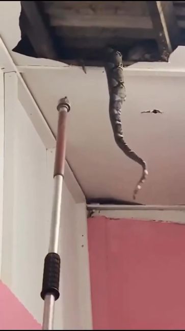 Una familia se llevó una insólita sorpresa cuando encontró varios ejemplares de pitones viviendo en su techo. El video que capta el momento en que las capturan, permite ver el enorme tamaño de los animales.