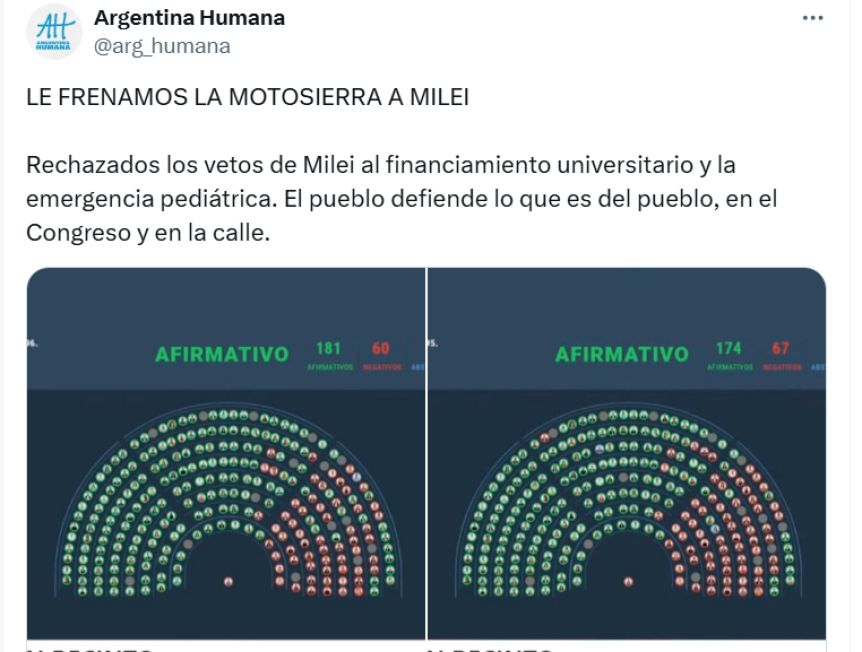 La fuerza del pronunciamiento del Congreso y de la calle es clarísima: hay que defender la Universidad pública, gratuita, inclusiva y de excelencia y un Garrahan con la capacidad de atender a los chicos y chicas de todo el país. Felicitaciones. pic.twitter.com/hqnCHrGbWk