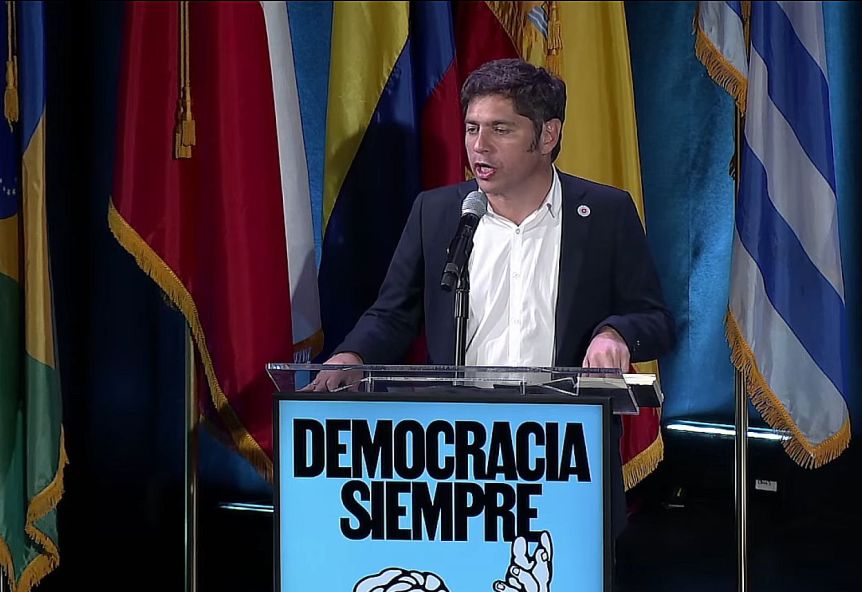 “La democracia está en peligro. Estamos viviendo un cambio de etapa, una época convulsionada”, dijo Kicillof. “Se trata de una etapa compleja, casi caótica. Lo que estamos viendo es el fin y la decadencia de la hegemonía norteamericana.”