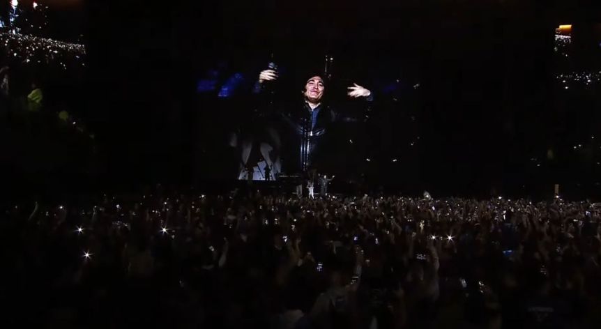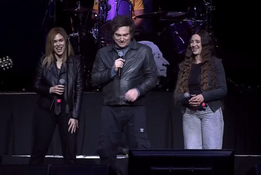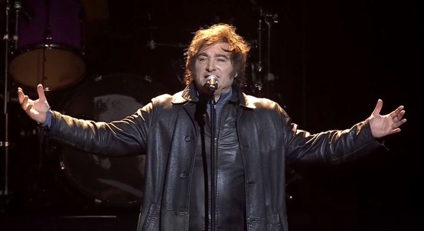 El presidente de la Nación, Javier Milei, canta en el acto de la presentación de su libro “La construcción del milagro” en el Movistar Arena pic.twitter.com/N2vaNGyNIx