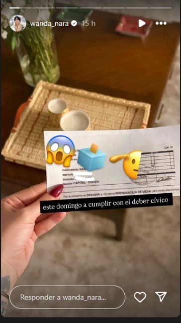 Wanda, sin embargo, fue tajante al respecto. “Ese día no soy Wanda Nara, soy la presidenta de mesa 842”, bromeó. También pidió respeto por el proceso democrático y aseguró que intentará mantener la calma y la formalidad durante toda la jornada, aunque reconoció que su presencia probablemente atraiga la atención de los medios.