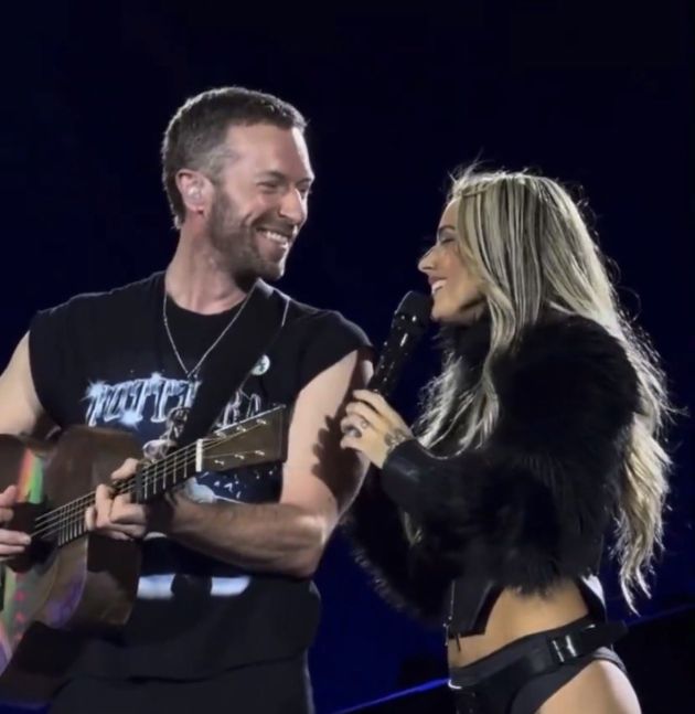 El líder de Coldplay acompañó con acordes suaves y su característico estilo introspectivo, mientras ella cantaba con una mezcla de asombro y ternura.