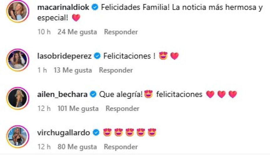 “Todo este amor y más es para vos, mi vida. Felices con la noticia de tu llegada. ¡Así te esperamos! Gracias virgencita por cumplirnos el deseo y muy agradecida por todos sus rezos y estampitas que me llegan desde hace tiempo”, escribió.