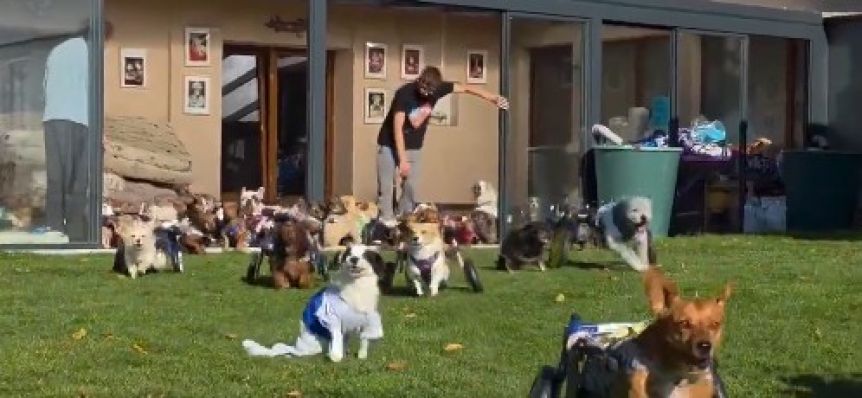 Una pareja adoptó a un grupo de perritos que utilizan sillas de ruedas para desplazarse, para brindarles los cuidados necesarios y atenderlos con mucho amor. La alegría de los canes al salir de la casa para jugar en el patio de su nuevo hogar es contagiosa. ¿Qué te parece?