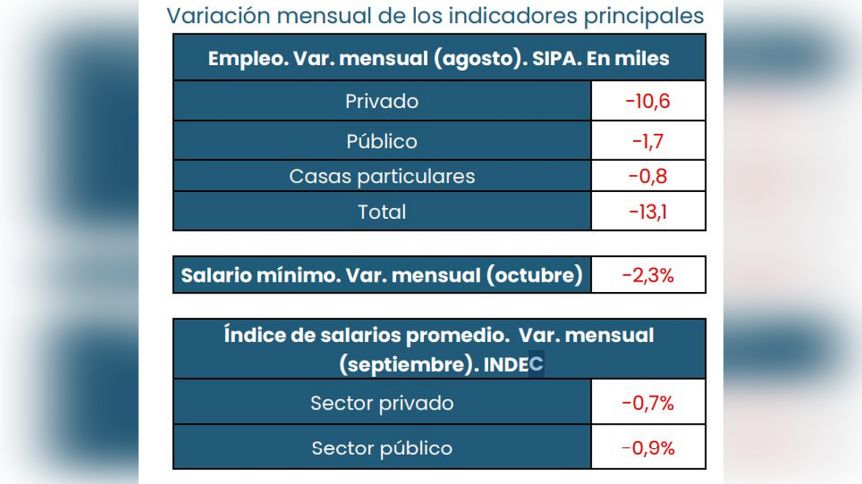 Según el trabajo del Instituto, desde mayo de este año el empleo asalariado formal viene registrando una baja sostenida, y en agosto se perdieron seis veces más empleos en el sector privado que en el público.