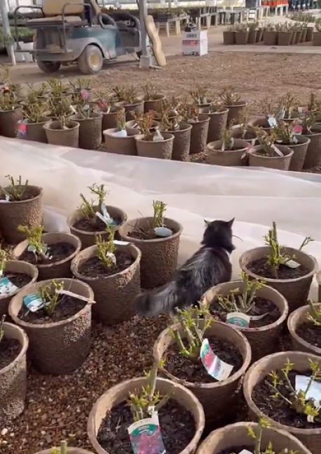 Empleados de un vivero encontraron una rata entre las rosas, por lo que tuvieron que desplegar al cazador de turno para que se hiciera cargo de la plaga. El gato cumplió con su trabajo en tiempo récord.