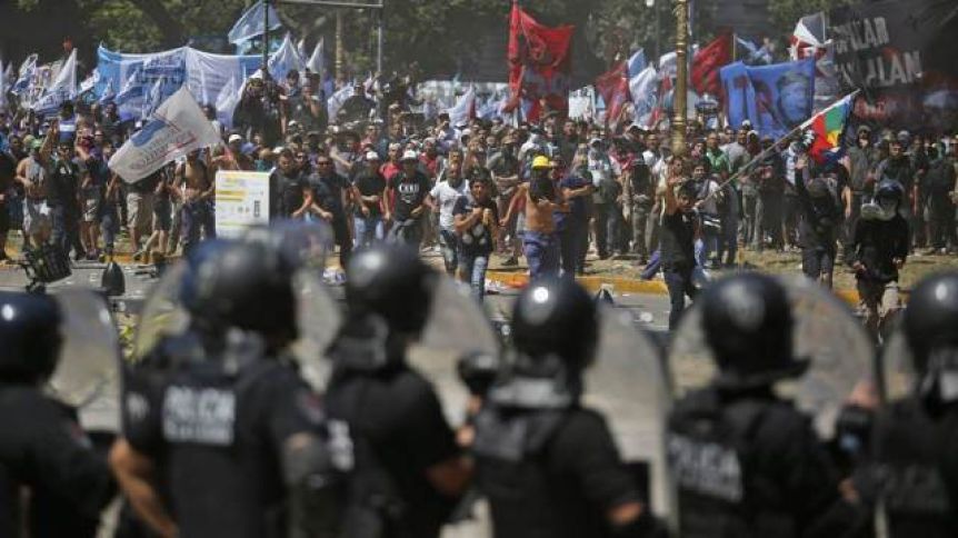 Un grupo de militantes de izquierda derribó el vallado dispuesto en las cercanías del Congreso, y las fuerzas de seguridad (Policía y Gendarmería Nacional) respondieron utilizando un camión hidrante y postas de goma.