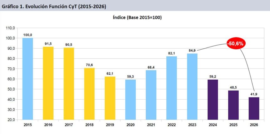 La caída es del 50,6% desde el cambio de gobierno.